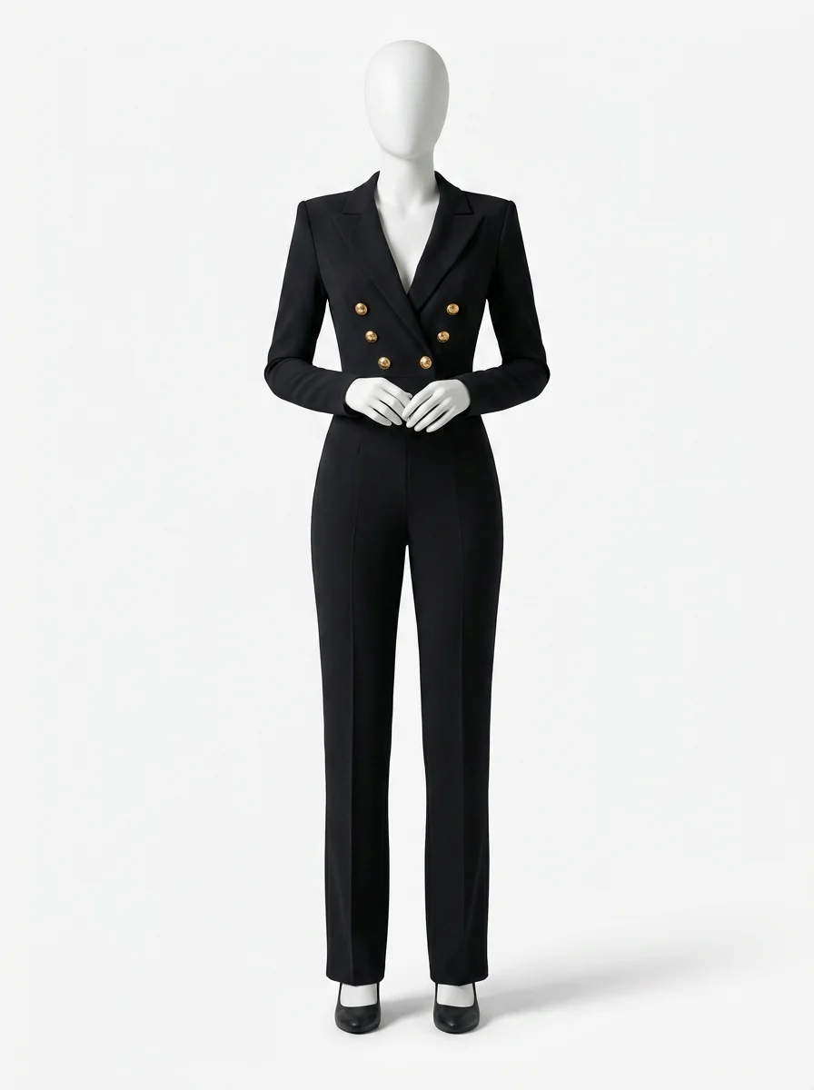 Des boutons dorés et un col à revers apportent une touche de luxe discret à une tenue quotidienne. La fluidité des jambes allonge la silhouette tandis que la taille marquée souligne les formes avec subtilité. Un entretien facile en machine garantit une allure soignée jour après jour pour les femmes actives en quête de raffinement.