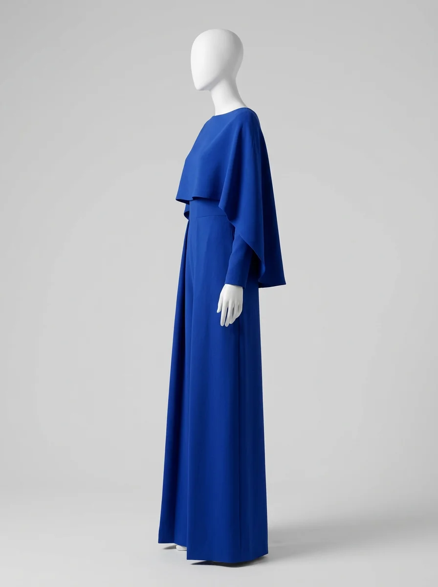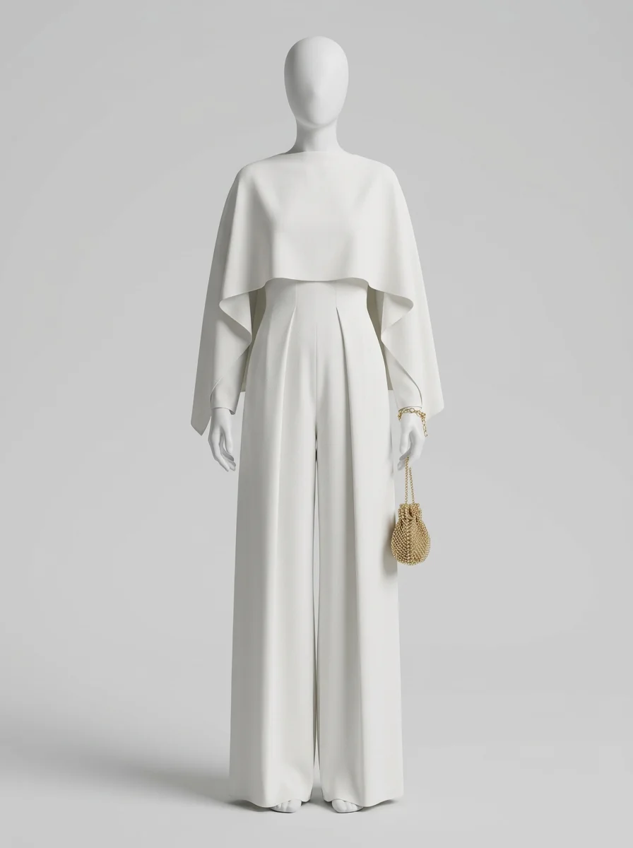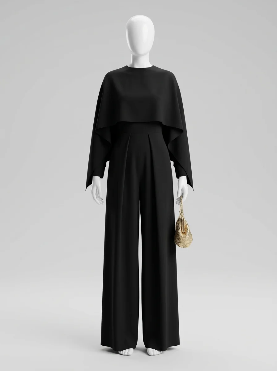 L’équilibre parfait entre la structure du pantalon et la légèreté de la cape crée un contraste visuel saisissant. Les vêtements d’exception transforment les déplacements en une véritable déclaration de style, assurant une présence mémorable sans jamais sacrifier la sobriété.