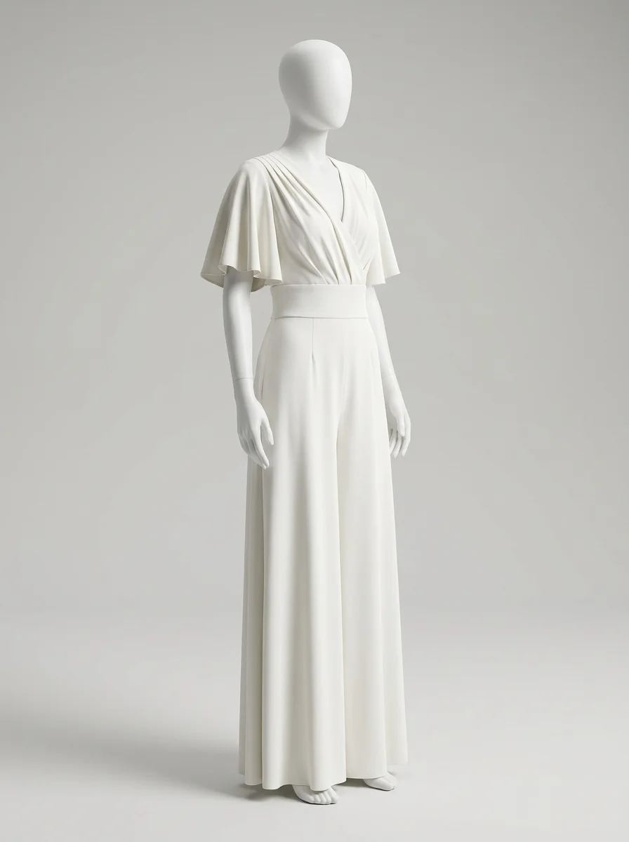 Une coupe fluide et une taille bien marquée créent une ligne élancée, idéale pour remplacer la robe traditionnelle. Un tissu léger permet de profiter pleinement de la soirée tout en conservant une élégance constante. Des jambes larges et des coupes fluides offrent une liberté de mouvement totale pour danser et célébrer avec assurance.