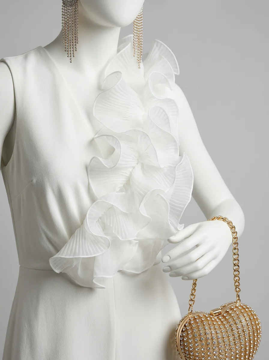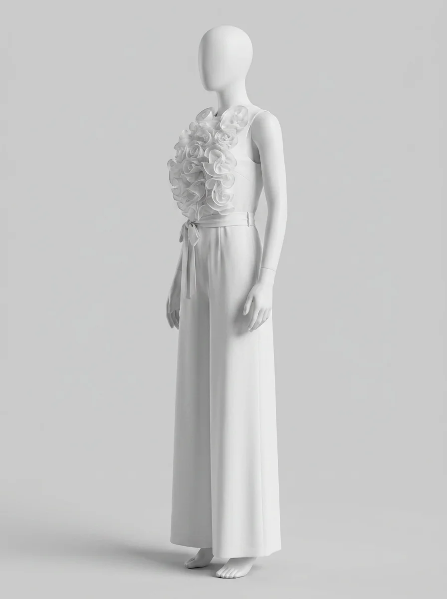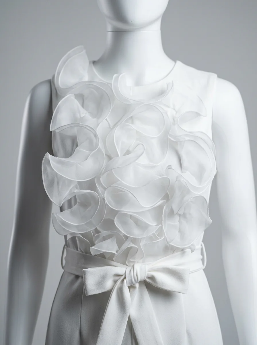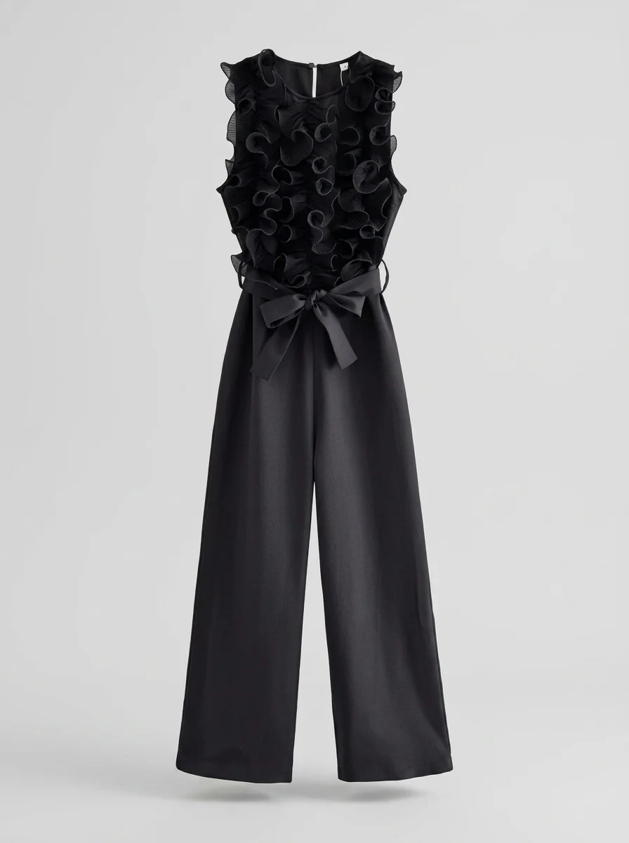 Une allure sophistiquée devient accessible grâce à une pièce unique au design travaillé. Les volants délicats apportent un volume aérien au buste, créant un contraste saisissant avec la fluidité du bas. Pour parfaire une garde-robe de soirée, l’adoption d’une combinaison pantalon chic assure une élégance sans effort et une silhouette élancée en toute circonstance.