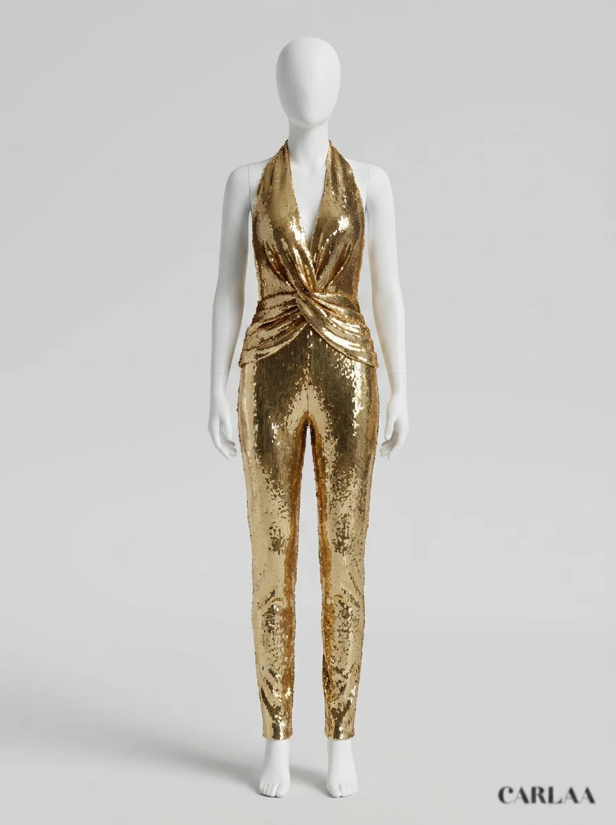 Les occasions spéciales demandent des tenues à la hauteur de l’événement. Des reflets dorés captent la lumière à chaque mouvement, transformant une silhouette en véritable icône de mode. Les modèles sont idéaux pour compléter une garde-robe de combinaison pantalon mariage grâce à une coupe qui allie élégance et audace.