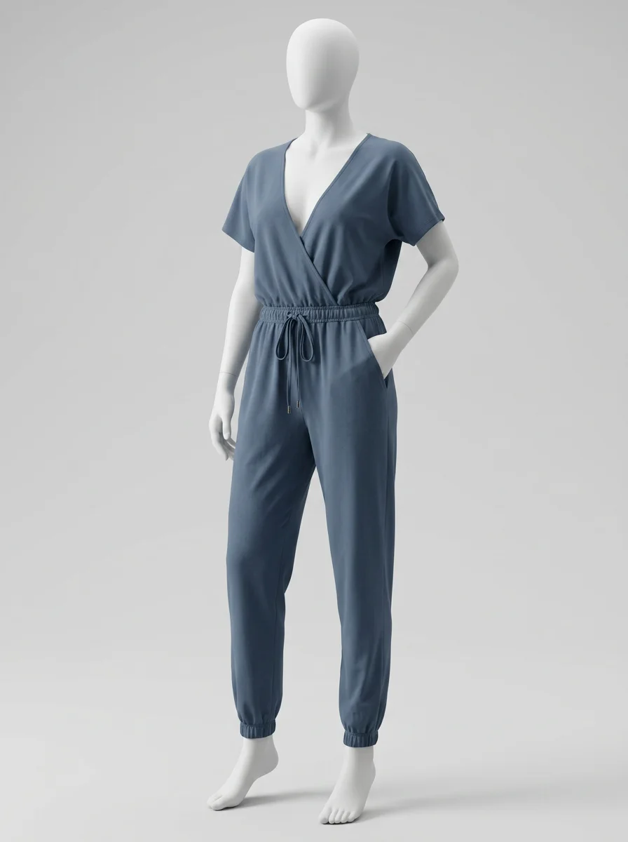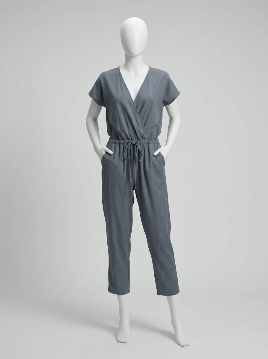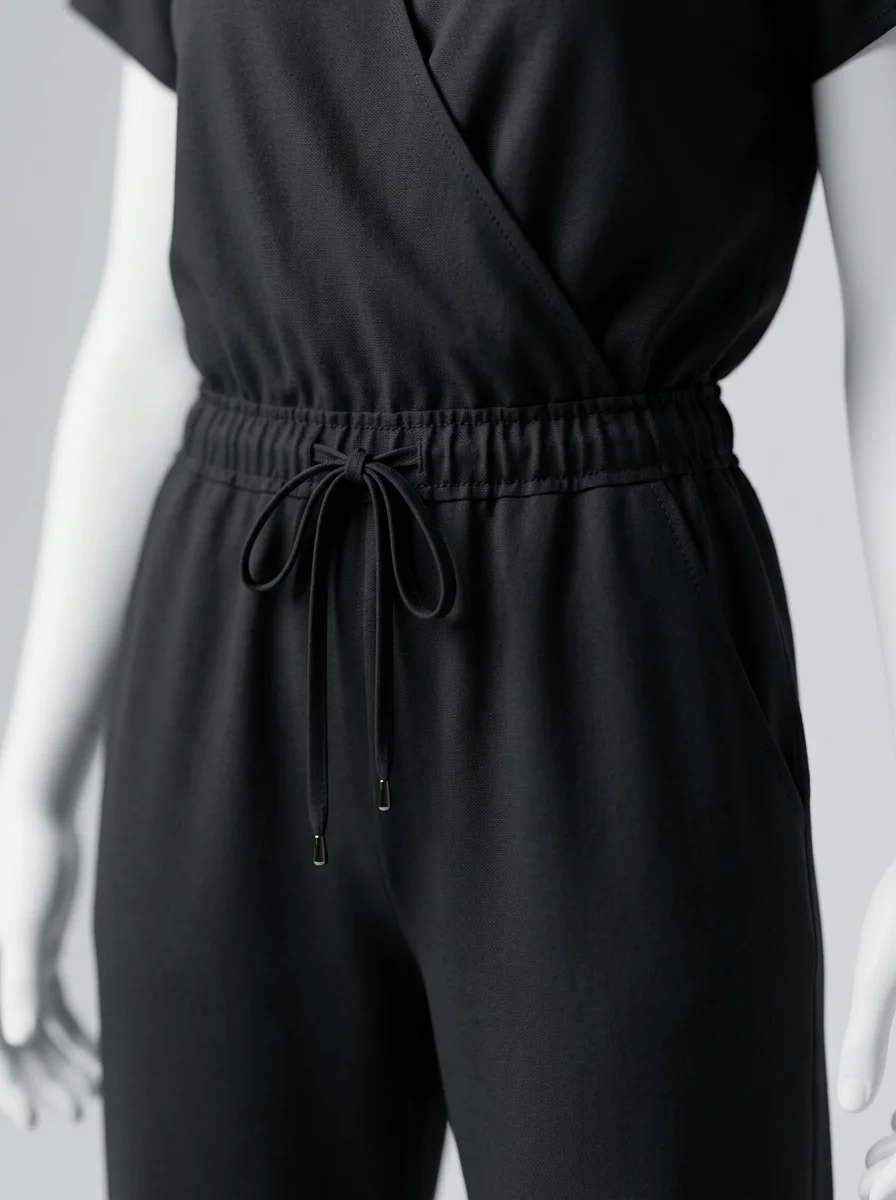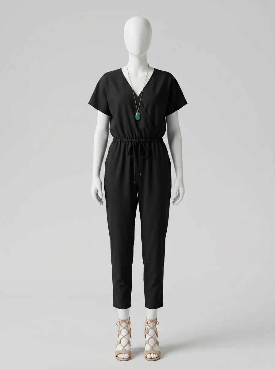 Des silhouettes fluides et des coupes flatteuses définissent une esthétique moderne idéale pour les journées actives. Une combinaison pantalon chic permet de transiter avec aisance d’un rendez-vous professionnel à une sortie décontractée. L’encolure croisée souligne le buste avec une sobriété remarquable, offrant un équilibre parfait entre confort et distinction.