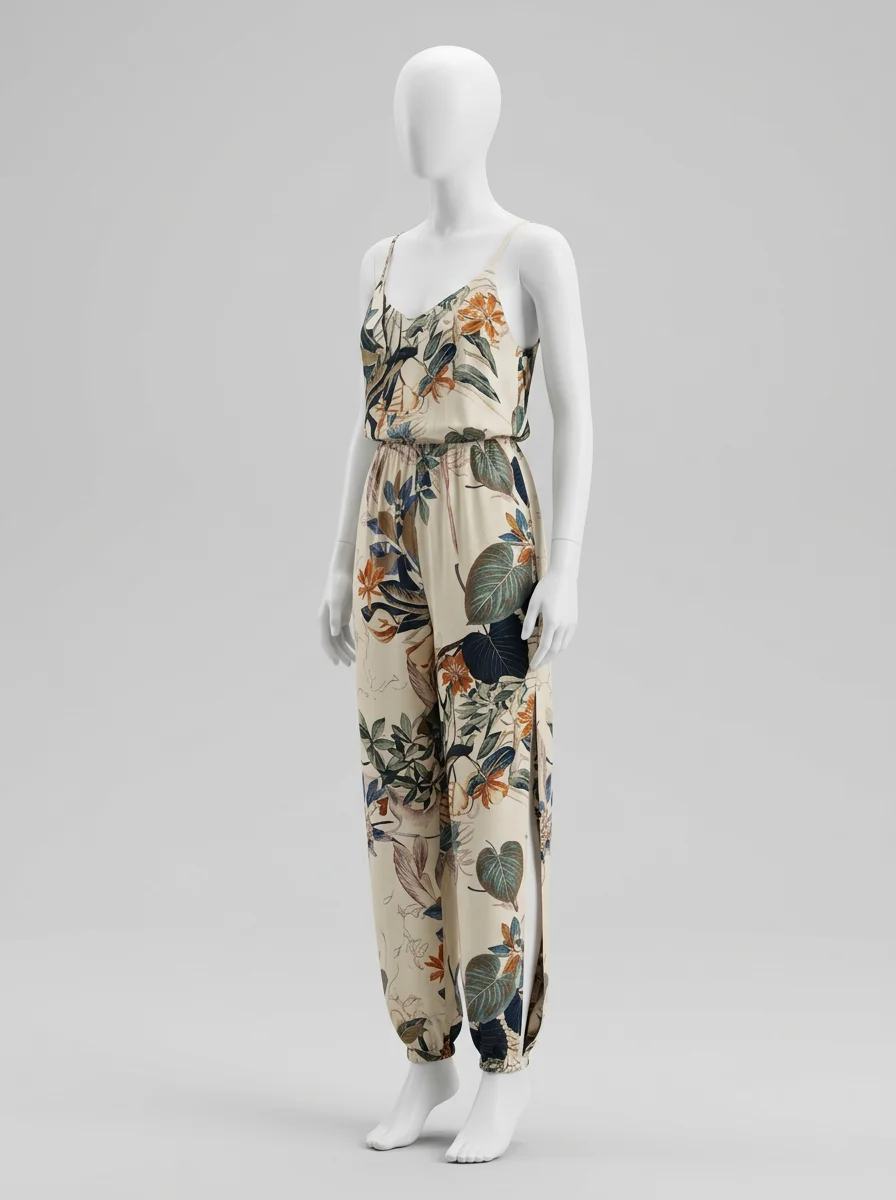 Les journées chaudes demandent des tenues offrant une liberté de mouvement totale et une allure rafraîchissante. Des motifs botaniques transforment une silhouette classique en une pièce maîtresse de la garde-robe. Une combinaison pantalon large assure un tombé fluide qui sublime toutes les morphologies avec simplicité.