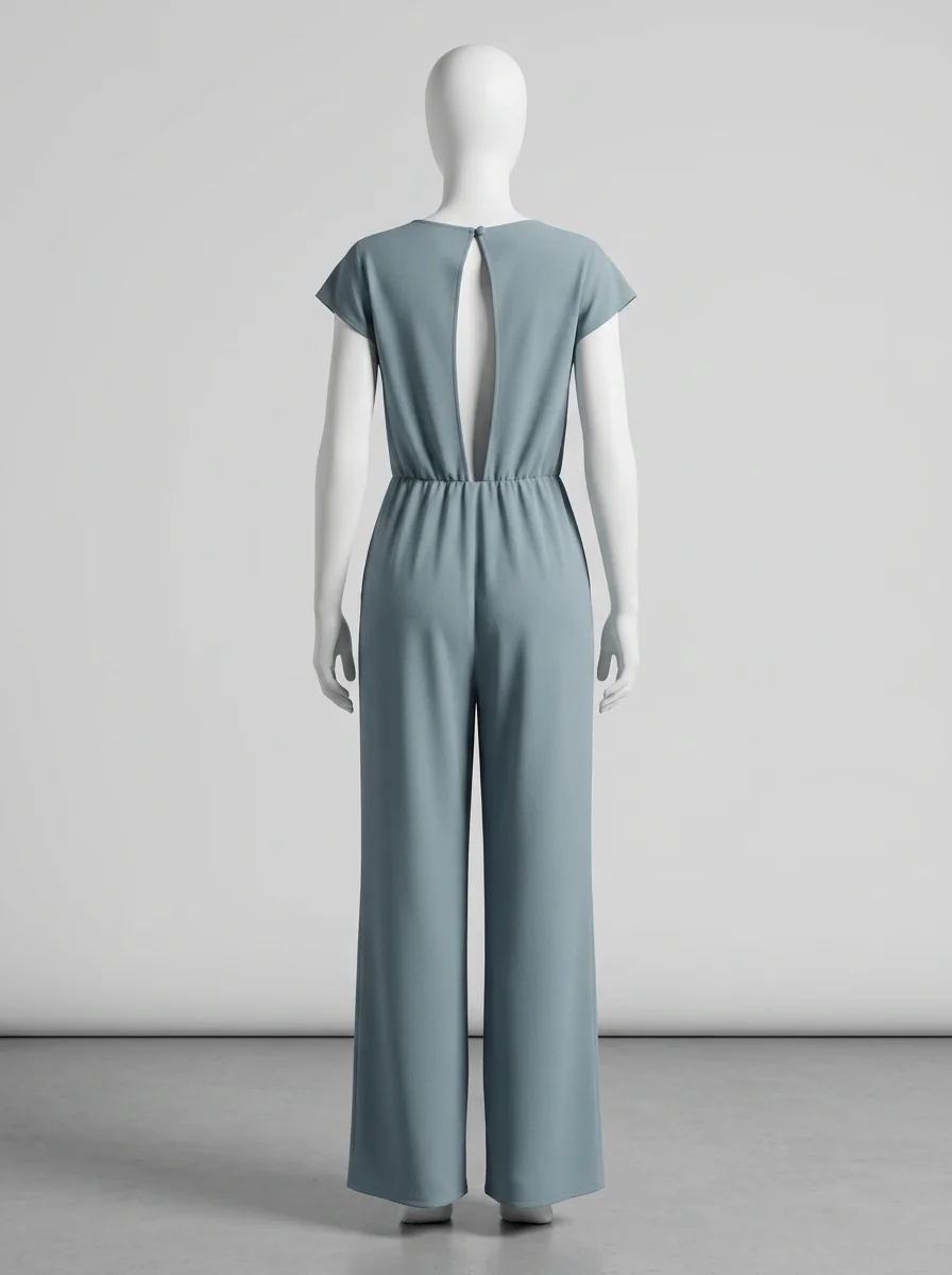Des matières douces épousent les mouvements avec grâce tandis qu’une découpe audacieuse dans le dos apporte une note ludique. Les jambes larges allongent la ligne pour un rendu sophistiqué et décontracté à la fois. Un choix idéal pour rester à l’aise tout en rayonnant sous le soleil avec des vêtements fluides.