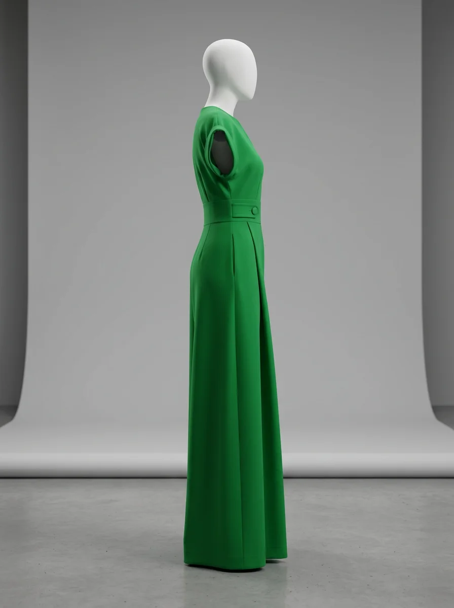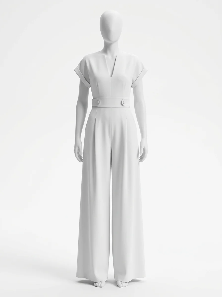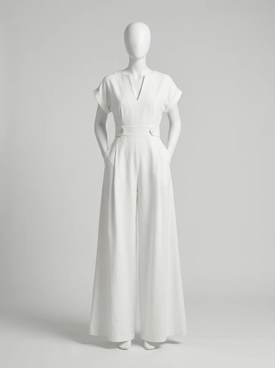 Des jambes amples associées à un décolleté en V créent un équilibre visuel impeccable. Les matières fluides assurent une liberté de mouvement optimale pour briller lors de moments d’exception.