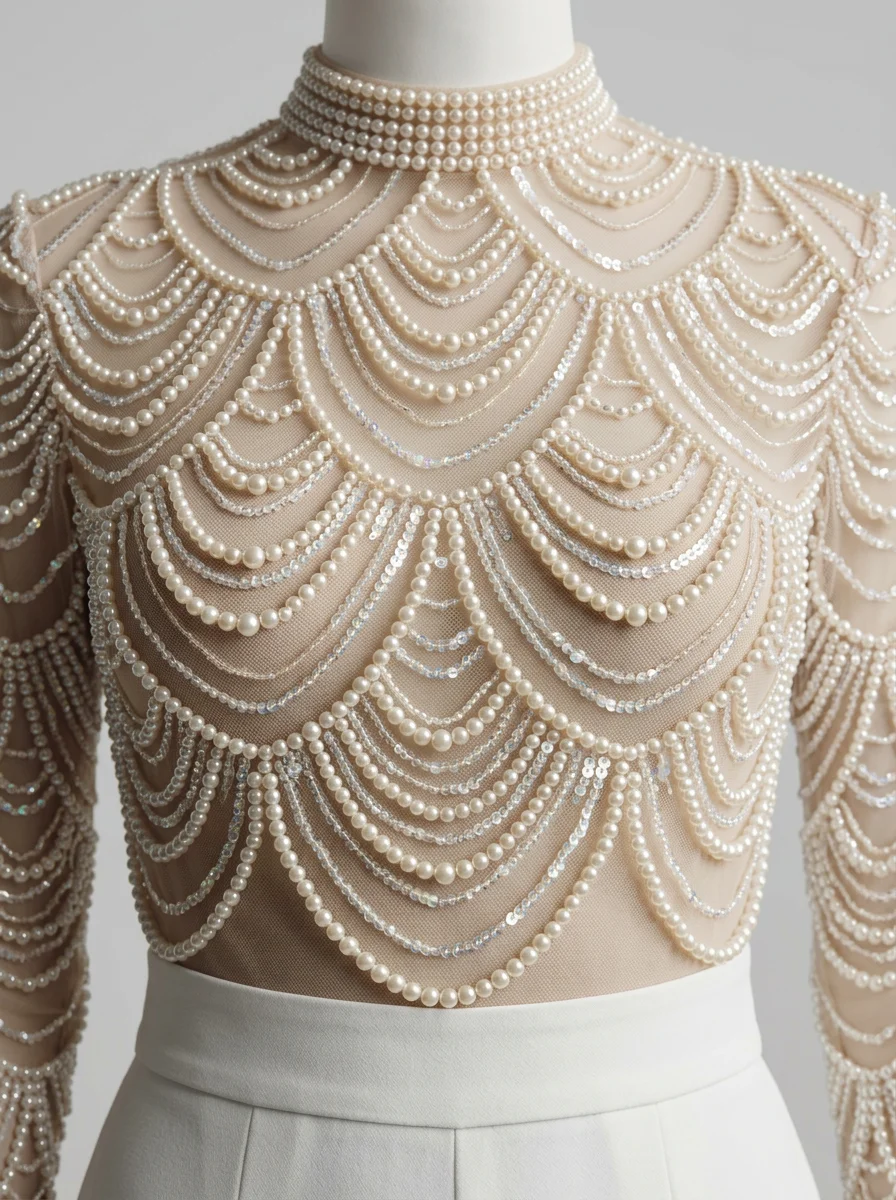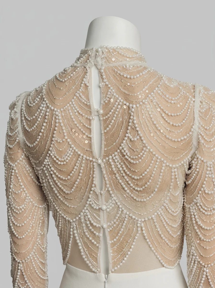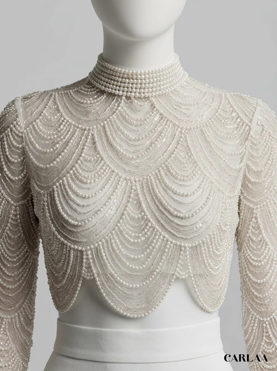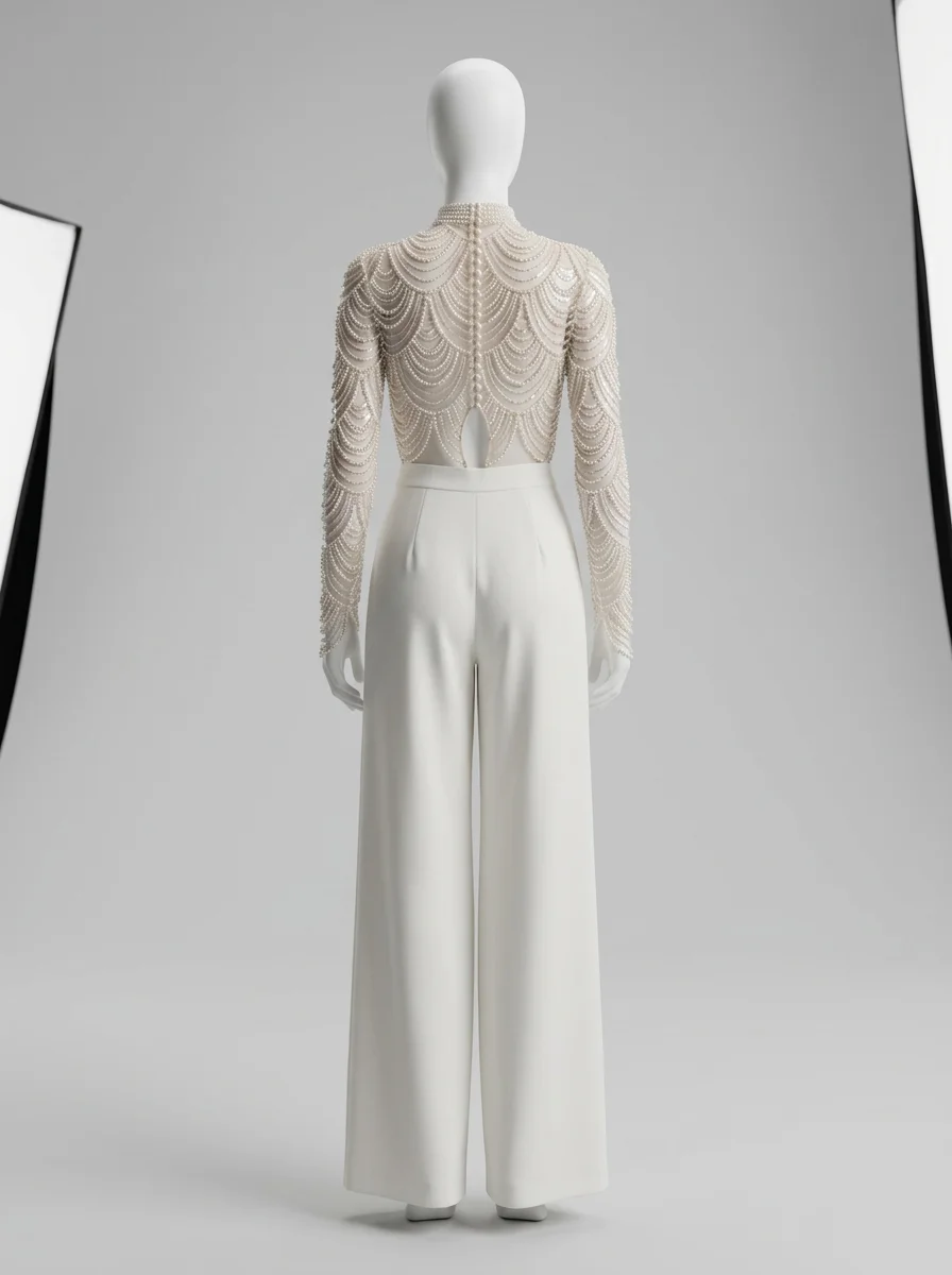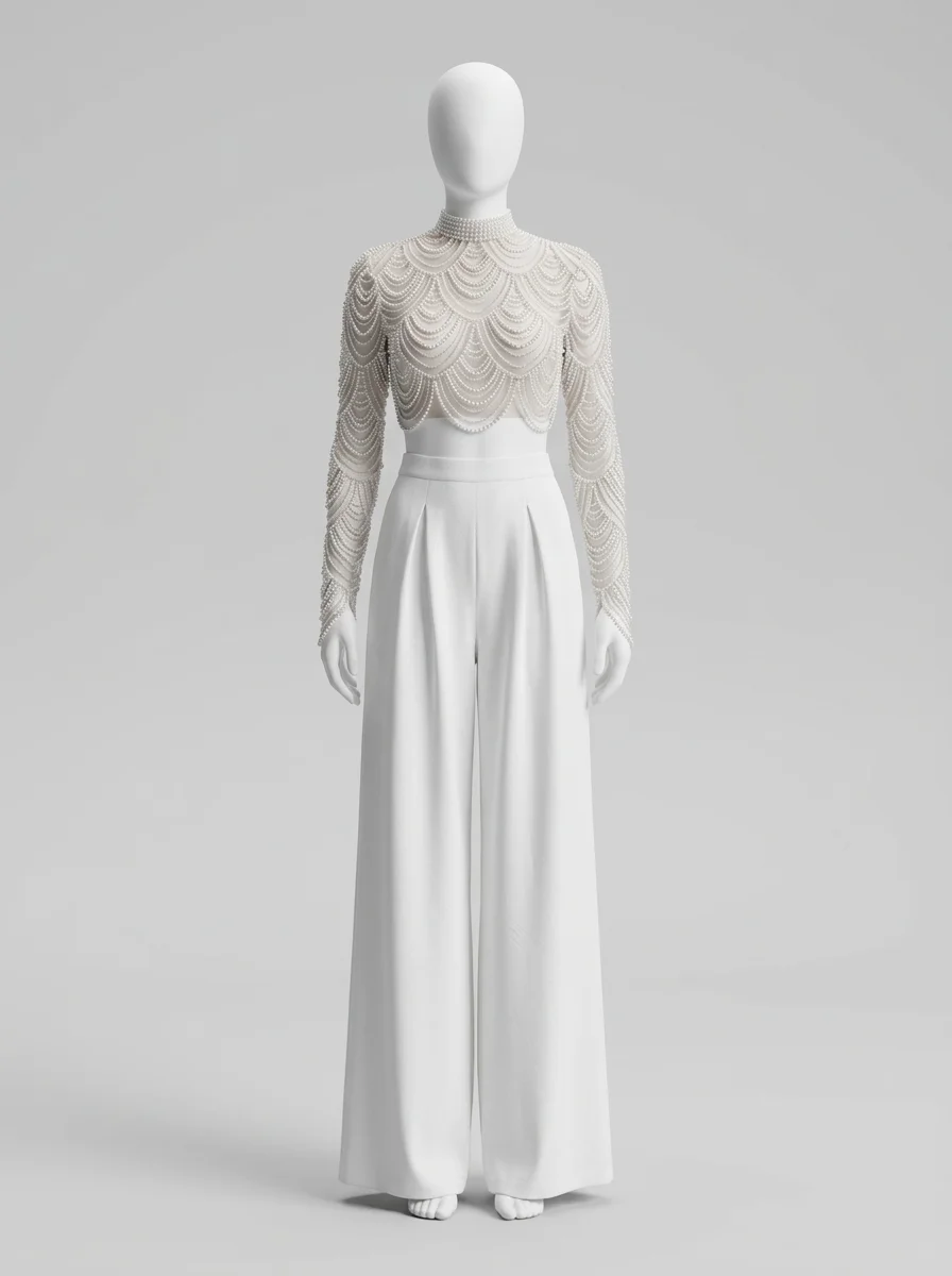 L’élégance rencontre la légèreté dans une création pensée pour les journées ensoleillées. Un haut en dentelle délicate s’associe à des manches longues transparentes pour offrir une silhouette raffinée. L’intégration au sein d’une combinaison pantalon mariage convient idéalement aux femmes en quête d’un style moderne et distingué.
