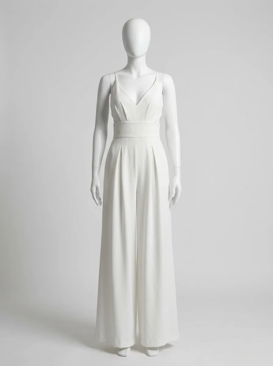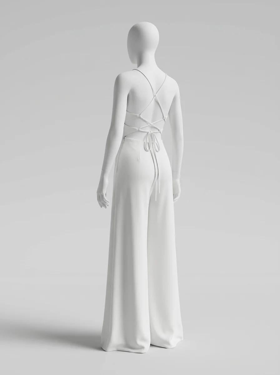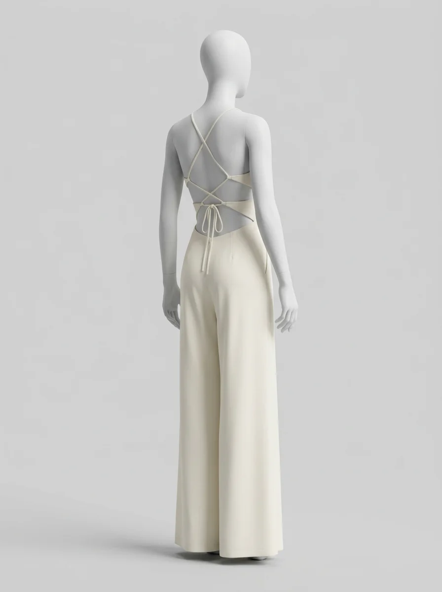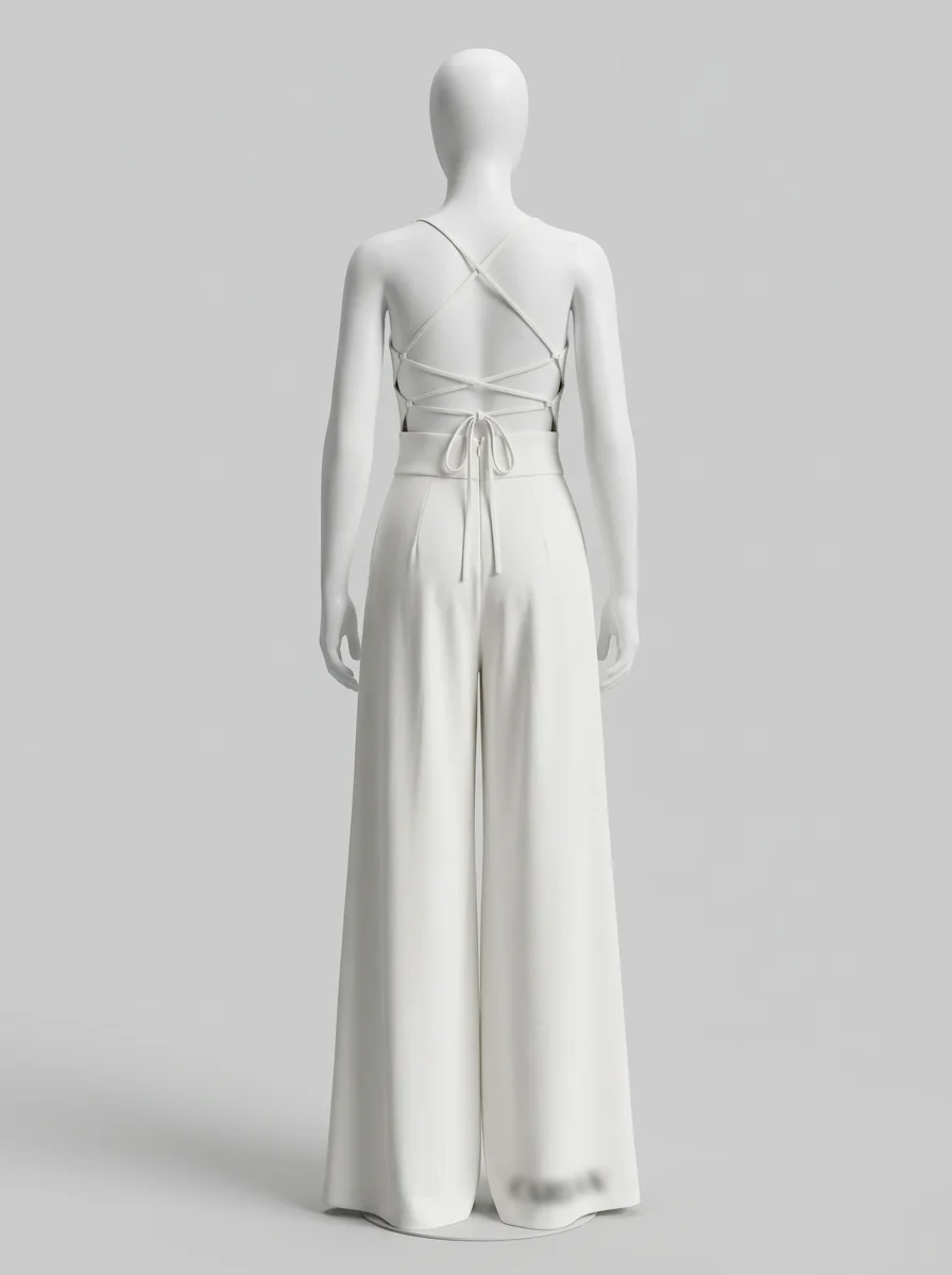 Des détails travaillés comme des bretelles croisées et des jambes larges transforment une tenue classique en une pièce de mode remarquable. L’aspect léger du tissu offre une sensation de fraîcheur idéale pour briller lors des réceptions ou des mariages.