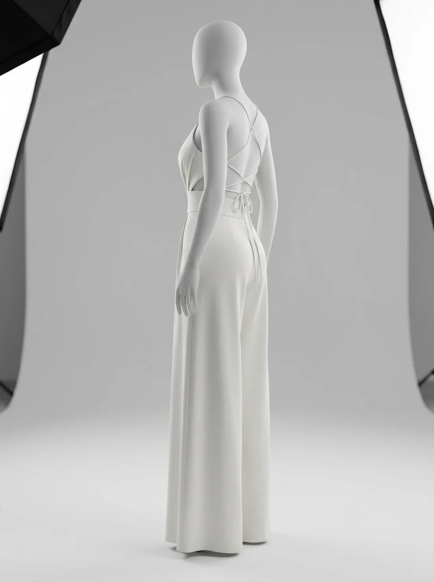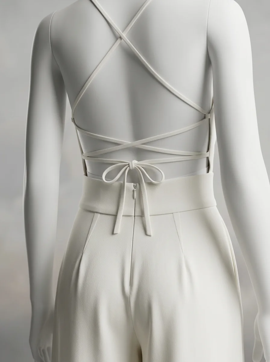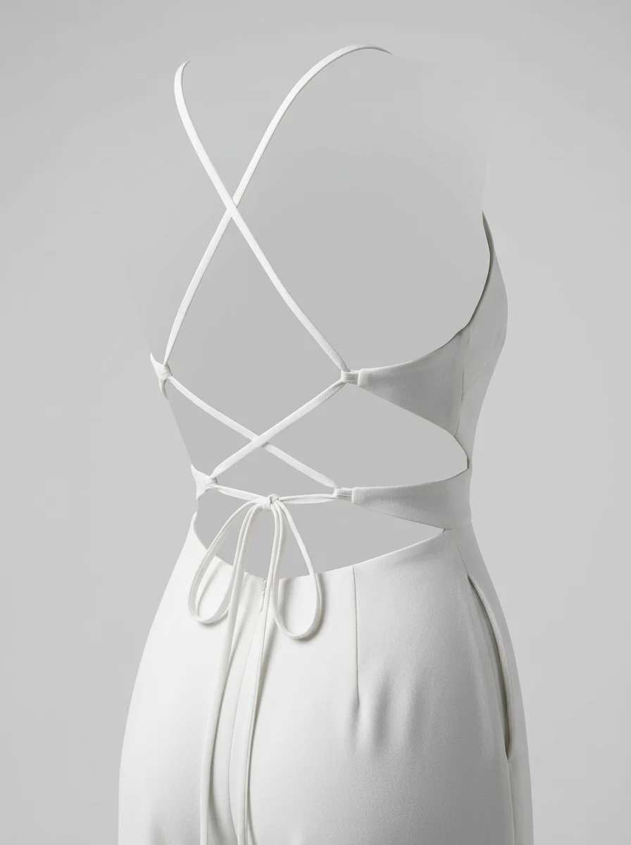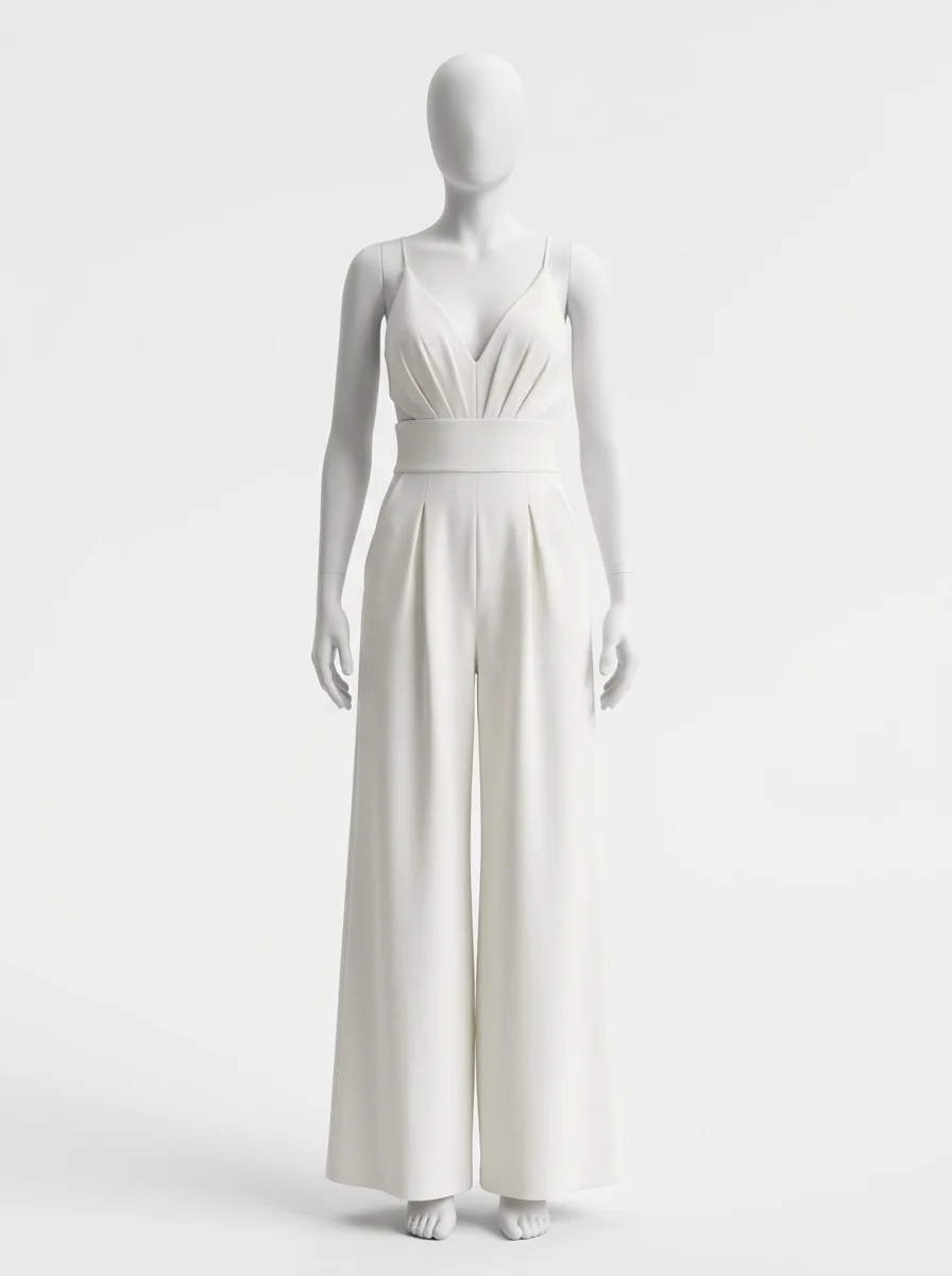 Des détails travaillés comme des bretelles croisées et des jambes larges transforment une tenue classique en une pièce de mode remarquable. L’aspect léger du tissu offre une sensation de fraîcheur idéale pour briller lors des réceptions ou des mariages.