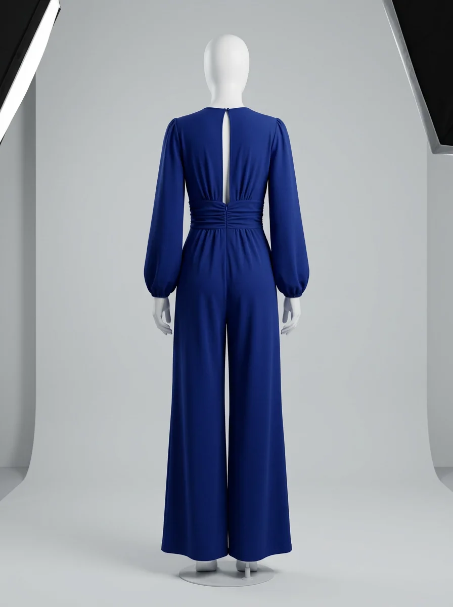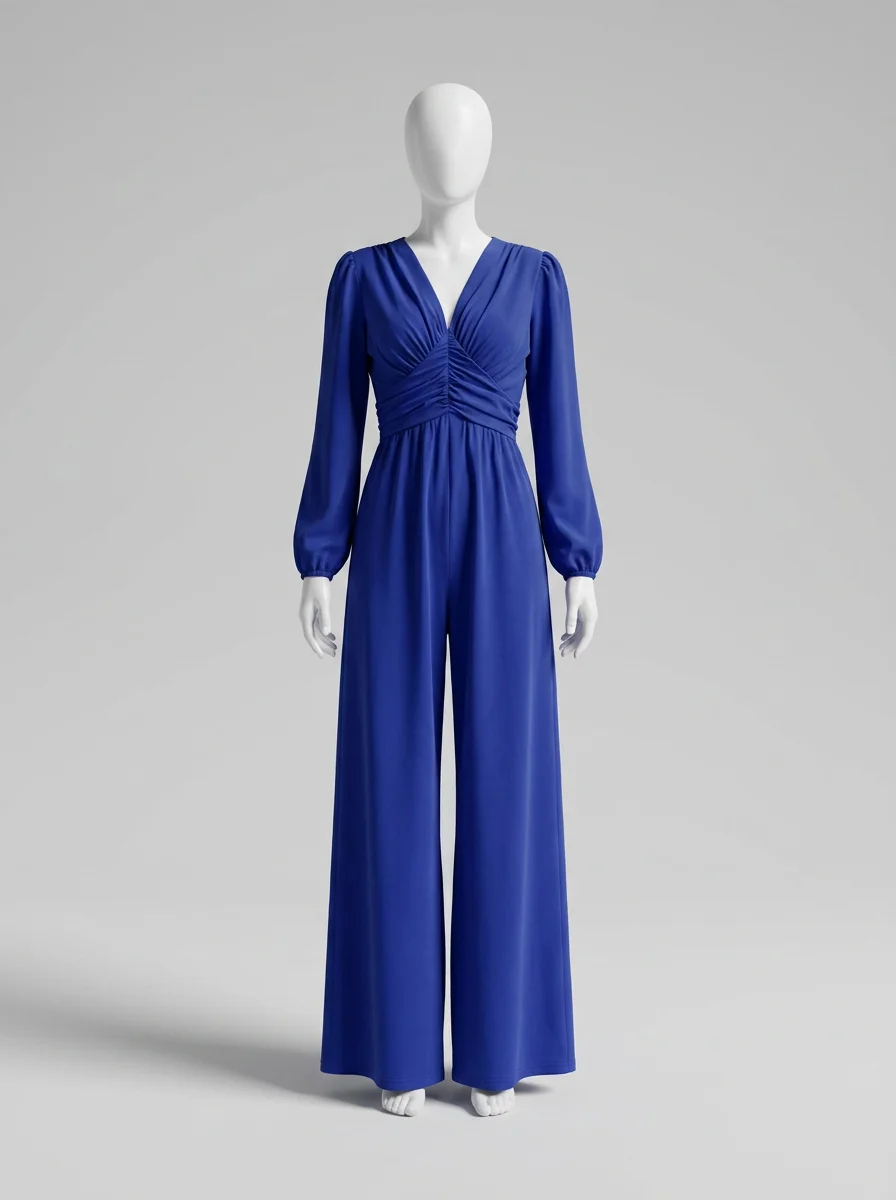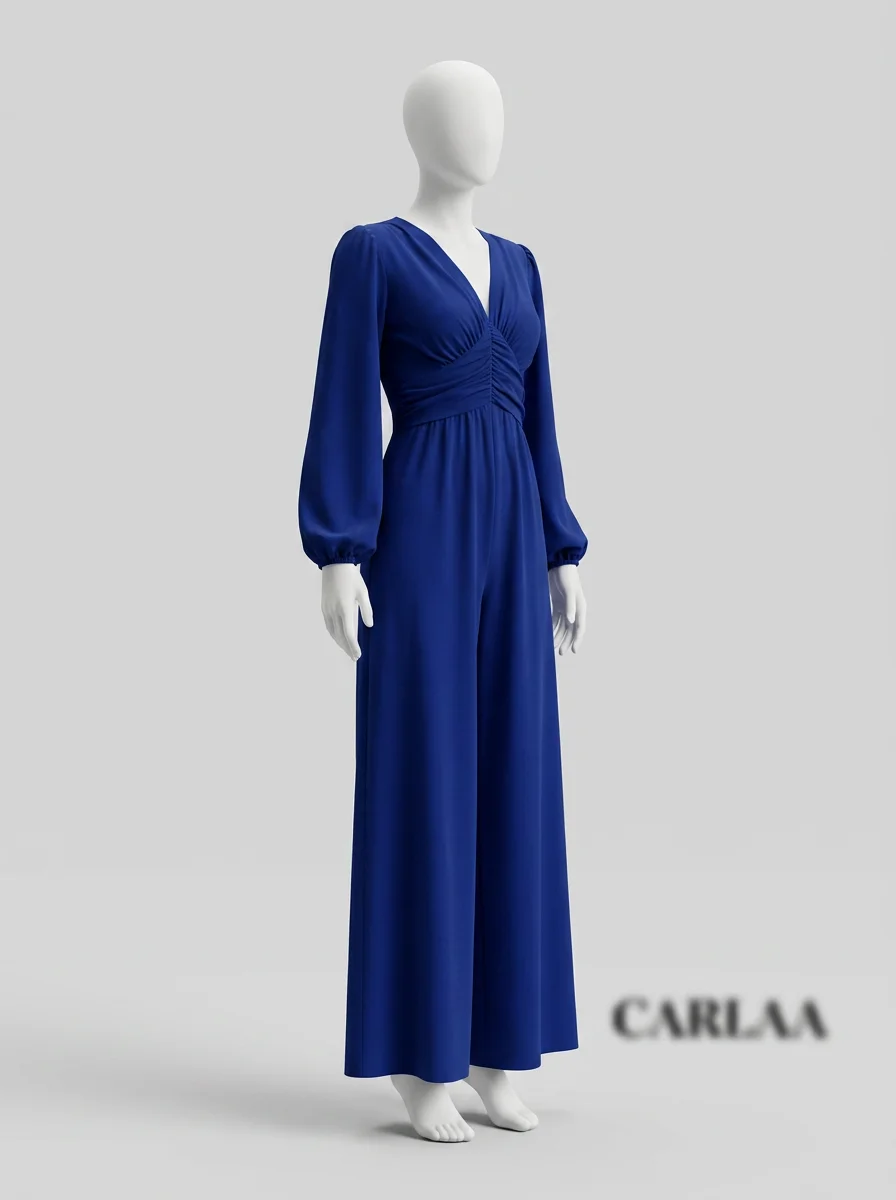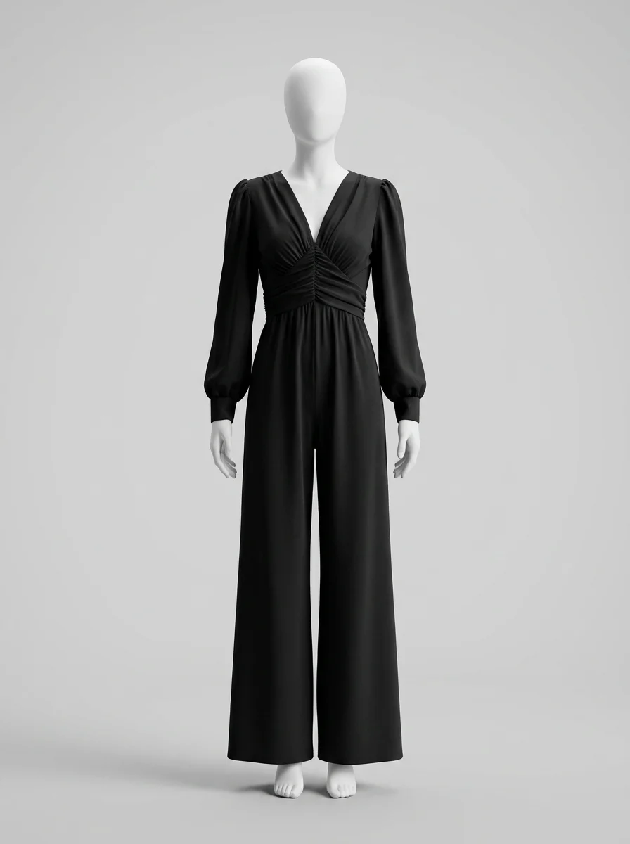 Des manches longues et une coupe ample offrent une liberté de mouvement exceptionnelle. Un décolleté en V et des détails froncés subliment la taille pour créer un look sophistiqué, parfait avec des talons ou des chaussures plates.