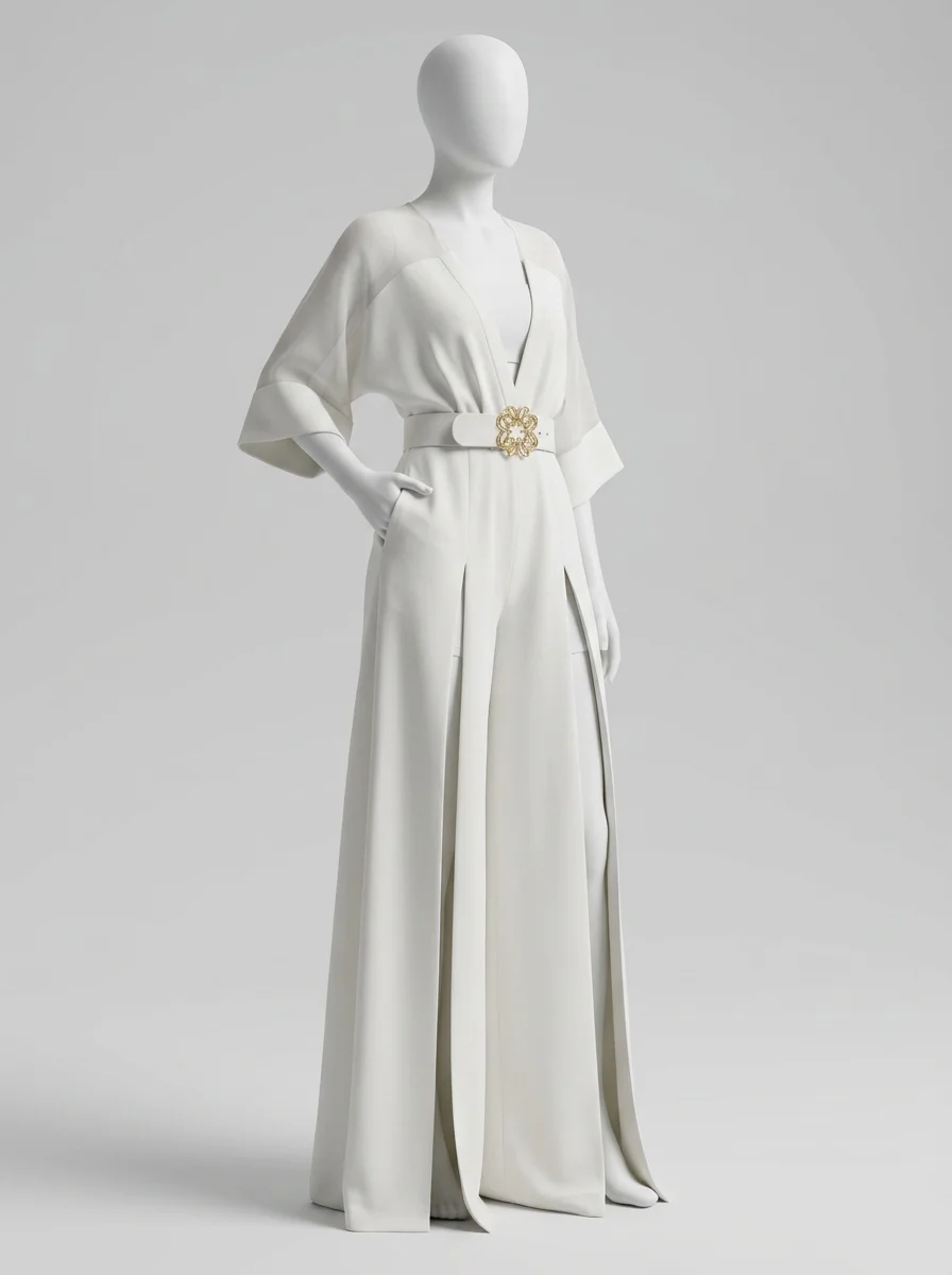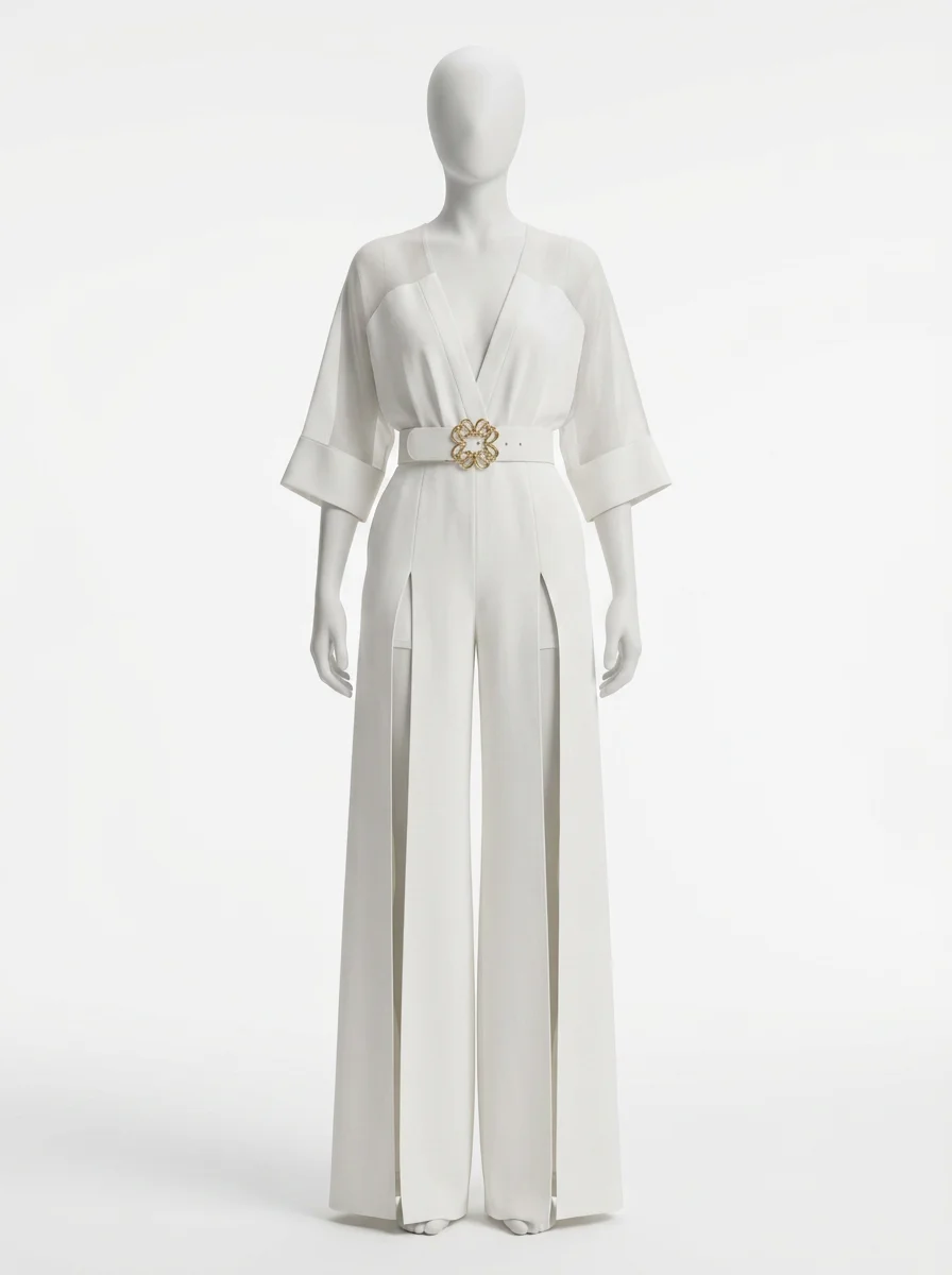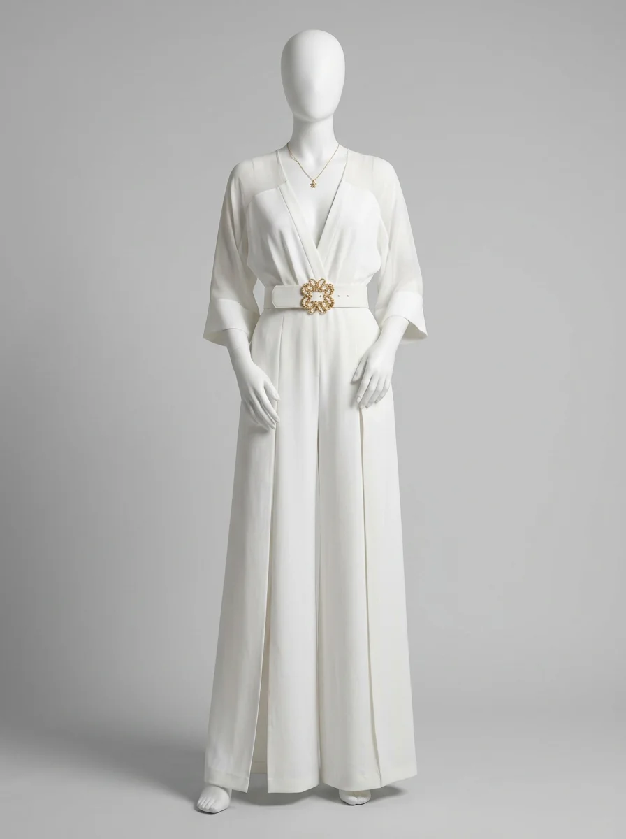 Les silhouettes élancées trouvent un écho particulier dans des coupes fluides et légères. Un modèle raffiné met en valeur les courbes grâce à une ceinture incrustée d’un motif doré, tout en assurant un confort optimal. Pour celles qui recherchent une alternative à la combinaison pantalon dentelle, des manches aux transparences subtiles apportent une note de mystère irrésistible.
