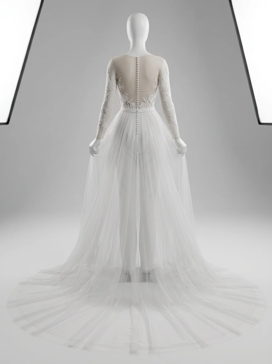 Les manches longues apportent une sophistication supplémentaire à la silhouette, tandis que la coupe fluide souligne la démarche avec grâce. Les designs pensés pour sublimer chaque mouvement permettent de briller lors du grand jour avec une élégance contemporaine et un savoir-faire minutieux.