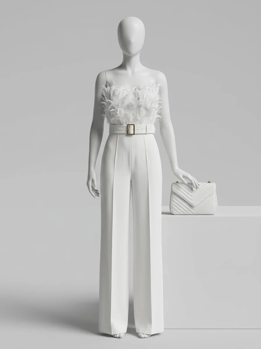 Des jambes larges offrent un contraste stylé avec le corsage ajusté, assurant une liberté de mouvement totale. Les occasions spéciales méritent des tenues d’exception qui capturent les regards par leur sophistication. L’association avec des talons minimalistes crée un ensemble parfaitement équilibré pour briller jusqu’au bout de la nuit.