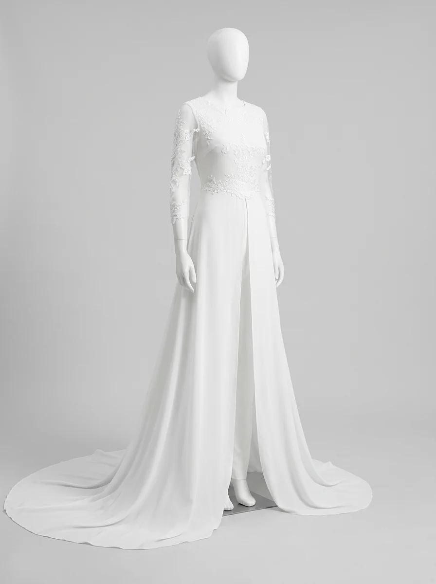 Les futures mariées en quête d’originalité trouveront dans une combinaison pantalon femme mariage l’équilibre idéal entre aisance et raffinement. Des lignes fluides s’associent à une traîne spectaculaire pour sculpter une silhouette majestueuse capable de marquer les esprits lors du grand jour.